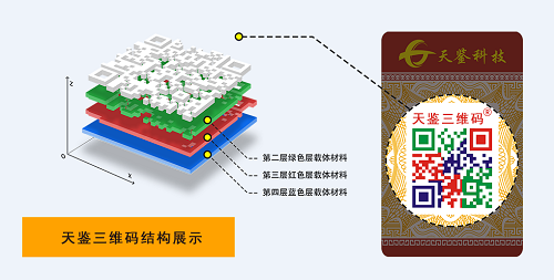 天鑒科技推出的“結構三維碼”就是這樣一款具備上述功能,又難以被復制的標簽,更確切的說是一種工具。結構三維碼的研發靈感來自于“打水花,鏨鏨子”,是以一種多層顏色結構材料為載體,將防偽元素和信息集合隨機雕琢其上,使之隨機呈現出深淺不同、顏色不同的結構特征,即使制造者自己也無法制造出一枚一模一樣的標簽,無法被復制的標簽就這樣問世了,杜絕了標簽被仿造的可能。